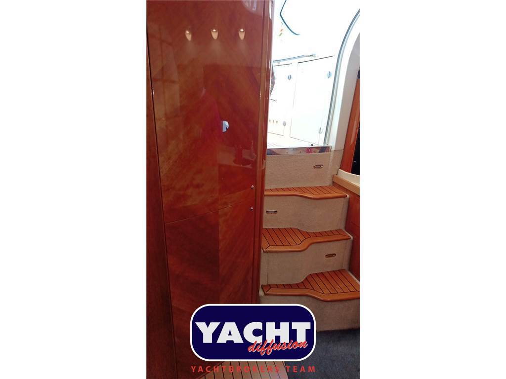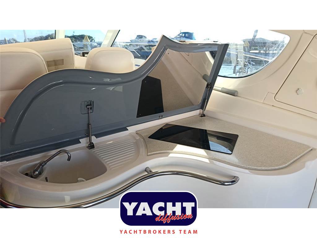 Allarme fumo/gas, Allarme motore, Allarme sentina, Alternatore, Apertura Vano Motore Elettrica, Autogonfiabile, Colorazione speciale, Doccia esterna, Elica di poppa - stern thruster, Elica di prua - bow thruster, Faro orientabile, Flap idraulici, Hard top, Impianto antincendio, Indicatori Flaps, Lavandino nel Pozzetto, Luci di cortesia, Luci subacquee, Parabordi, Passerella, Piattaforma, Pompa di Scarico del Serbatoio Acque Reflue, Pompa di sentina automatica, Pompa di sentina manuale, Pozzetto Teak, Presa 220V banchina, Presa acqua banchina, Salpa Ancore Elettrico, Scaletta da bagno, Sistema Depurazione acque nere, Tavolo pozzetto, Tavolo Salone Abbattibile, Tromba, Winch.